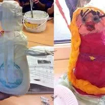 Det finns heller inga specifika regler. Alla blir en återvinnare. Papier Mache är en fysisk skaparform där barnen får riva och slita i papper, kladda med lim, klippa i kartong och hönsgaller, pilla med pärlor, knyta snören, färga med silkespapper, dekorera med allsköns krimskrams och oemotståndligt stjärnglitter. Denna process främjar inte bara deras finmotoriska färdigheter utan också deras förmåga att visualisera och genomföra sina idéer.